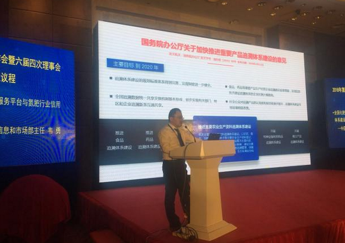 中国氮肥工业协会信息和市场部主任韦勇介绍“全国化肥电子防伪追溯服务平台与氮肥行业信用体系建设情况”